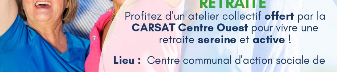 Le CCAS de Ruelle sur Touvre en partenariat avec la CARSAT Centre Ouest vous propose de préparer votre retraite grâce à des ateliers collectifs gratuits sur 5 séances.