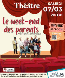Billetterie : Tous les bénéfices seront reversés à l’association AHVEC, au profit de l’orphelinat La Source au Cameroun.
